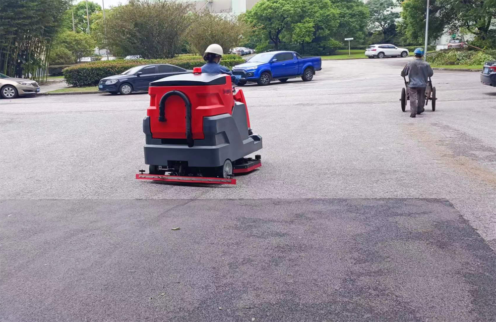 然后我們只要腳踩下踏板,駕駛式洗地機(jī)就會(huì)工作。